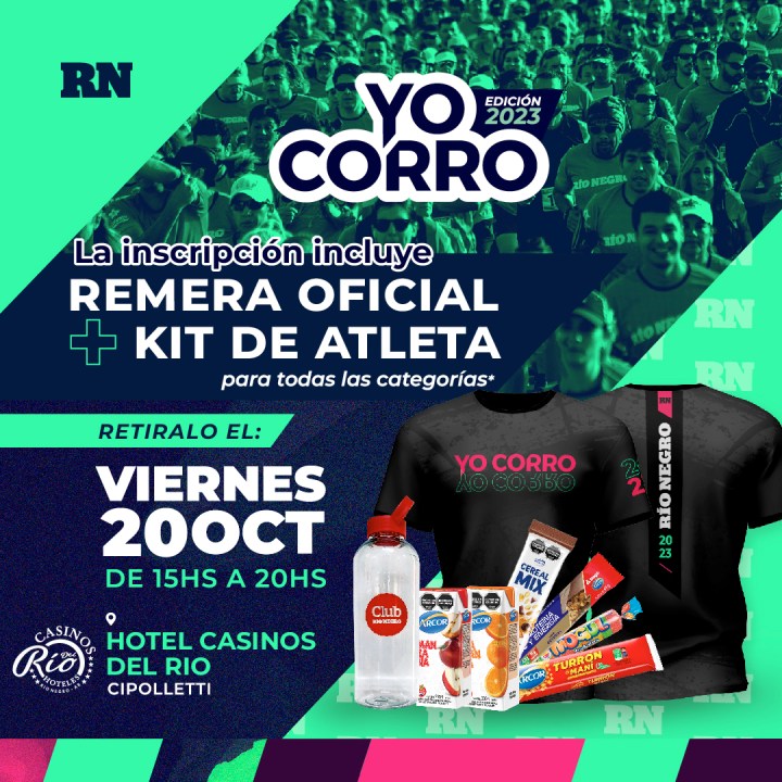 Con respecto al horario de acreditación, te cuento que será mañana viernes 20 de octubre, de 15 a 20, en Casinos del Río Cipolletti. Con la acreditación retirás la remera y el kit oficial.