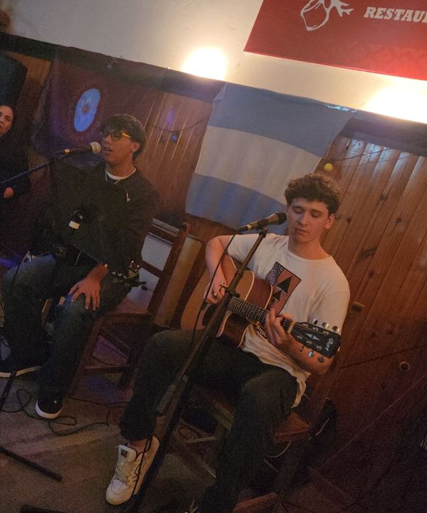 Y eso siempre funciona. El sábado pasado por la noche estuvieron allí Maxo y Tomás con su banda “Los Mani0’s”. Dos adolescentes que hacen música en sus casas y en juntadas con amigos. De música saben, uno porque estudia dentro de lo que se denomina «educación formal» y el otro porque viene de una familia «musical». Pero ambos, despojados de todos los preconceptos tienen al momento de abrazar la guitarra una pasión por la música que les brota de las entrañas sin herencias.