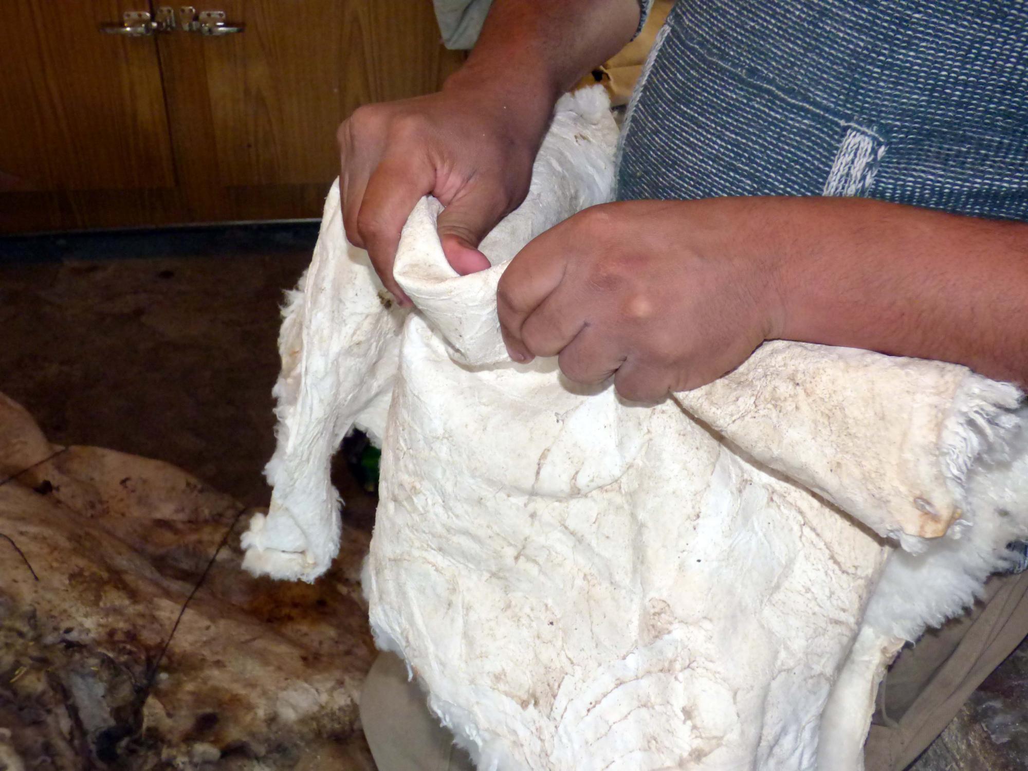 - En caso del cordero (lana) o chivo (pelo) se procede a quitar el sobrante que no se va a usar, que es la cabeza y las patas del cuero.