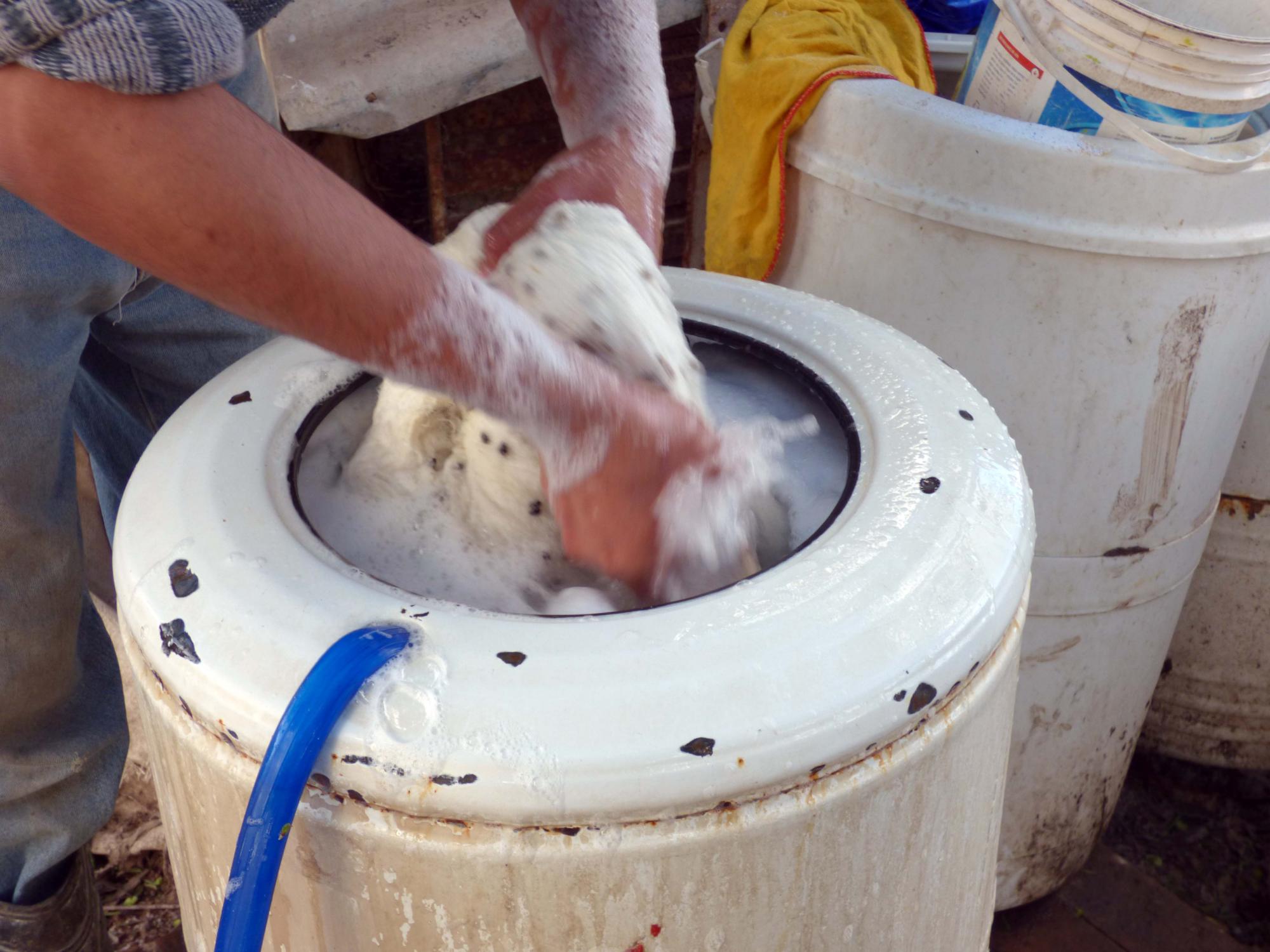 - Luego se lleva a un lavarropas a paleta con jabón en polvo, para profundizar la limpieza de la lana o el pelo.