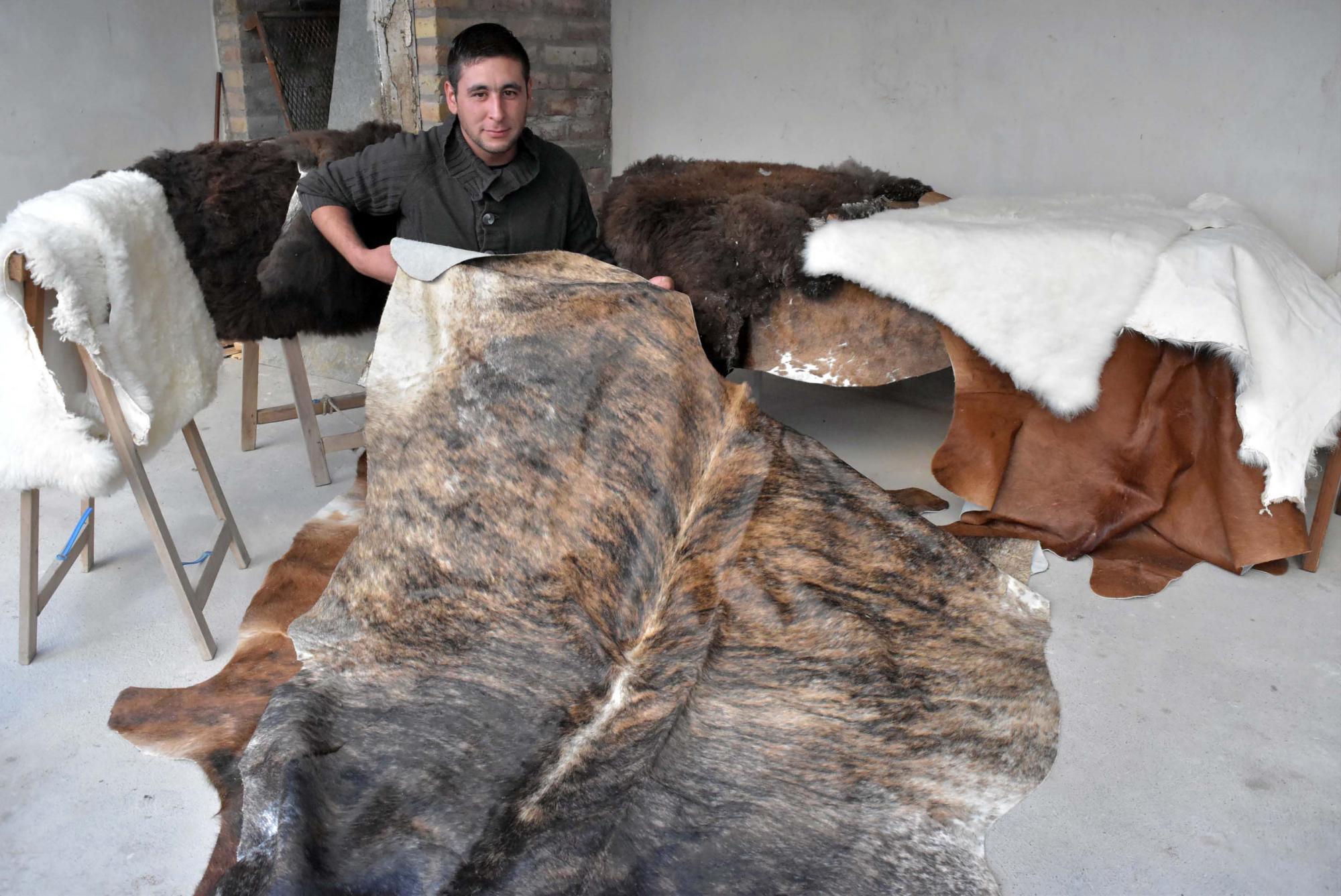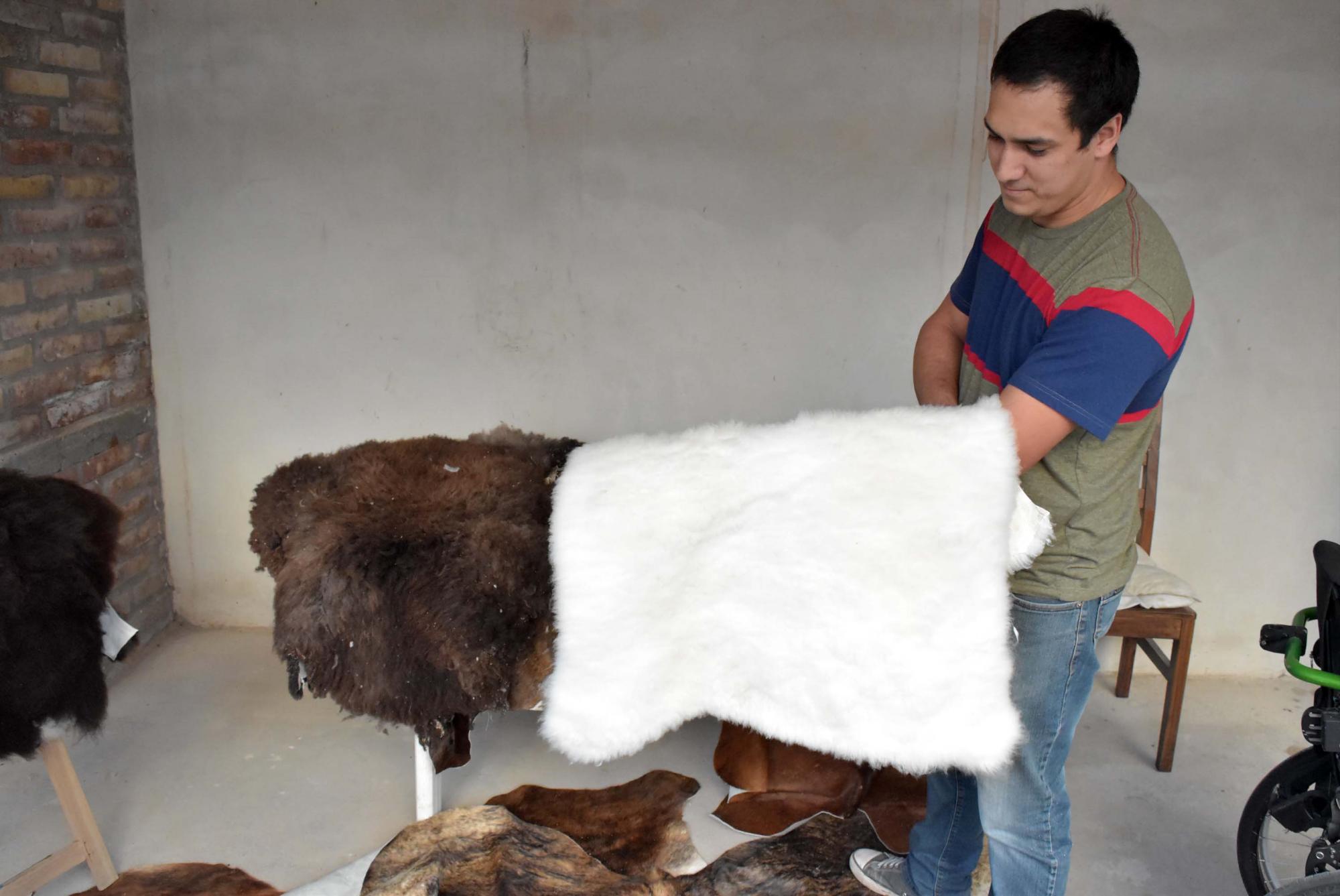 El emprendimiento familiar produce, en una simple habitación, cueros de una amplia variedad de animales que están permitidos por Fauna, como chivos, corderos, vacunos, liebres, zorro, pumas, alguna nutria y hasta de chachos jabalíes.