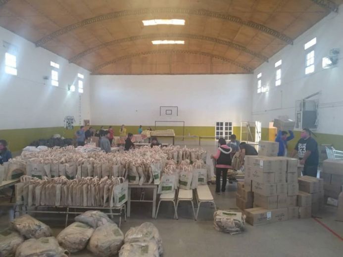 Por otra parte, el Consejo Escolar en la zona del Valle Inferior armó 2.000 módulos que fueron entregados a los directores de las escuelas ya que ellos cuentan con el listado de las familias más necesitadas.