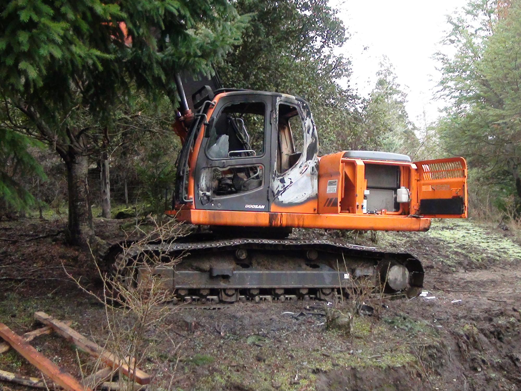 Las máquinas retroexcavadoras estaban afectadas al tendido eléctrico subterráneo entre la central hidroeléctrica Lago Escondido y El Bolsón, y son propiedad de Pampa Energía y del contratista local Alejandro Namor. Ambos están valuadas en casi 3 millones de pesos.