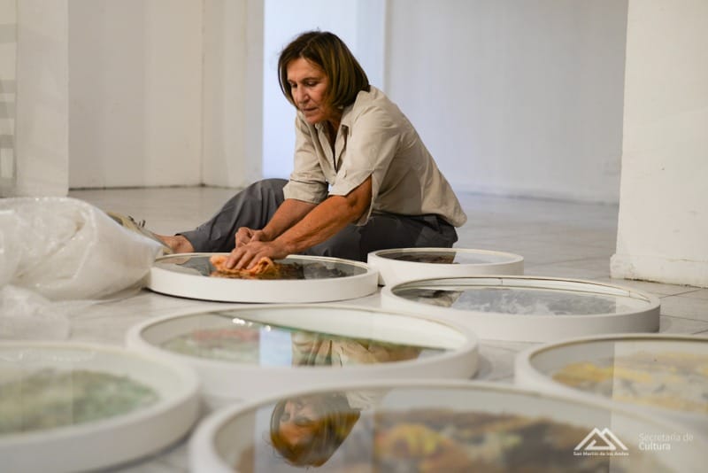 Además, la exposición cuenta con un material audiovisual especialmente producido por el joven fotógrafo sanmartinense Benjamin Tiemersman, quien retrata a las artistas junto a una de sus principales creaciones. Apostando a la multisensorialidad, la muestra se completa con un acompañamiento musical a cargo de Pablo Martínez Zuviria y Rafael Escudero. Ambos trabajan junto a una instalación de tubos y cerámicas, entre susurros y ecos. Isabel De Laborde Larminat se describe como una artista versátil: “Lo divertido es entrar y salir de diversos personajes. Dejar pensar a mi mano y que fluya a partir de una línea. Ese es mi camino, algo que reforcé viviendo en el campo. Allí se puede ver muy bien la abstracción”. La poesía, la geometría y la naturaleza son puntos de inspiración para esta experimentada creadora, que habla de la línea y de la mancha como amigos fieles: “Tener restos de los cuales partir para empezar una obra es lo mejor que te puede pasar”.