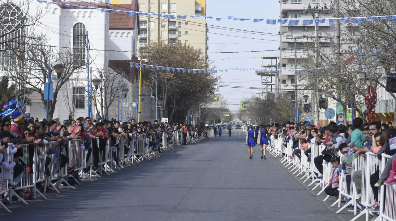 En medio de un alerta meteorológico por el viento, Roca celebra su aniversario con el tradicional desfile en pleno centro de la ciudad ante un buen marco de público.