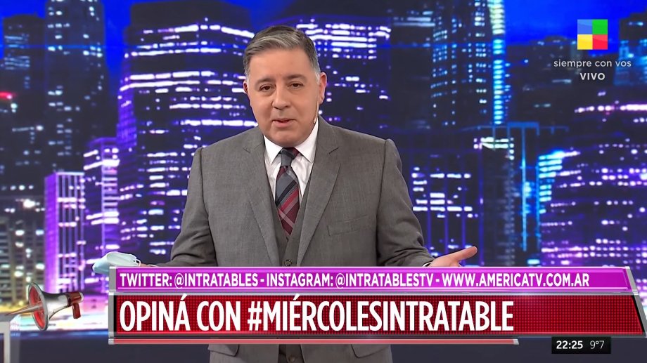 Por último se refirió a Intratables, el programa emblema de América. “Levanten cualquier programa, este no. Pocas veces canales de televisión logran generar programas clásicos, como Intrusos o como Intratables. Y pocos espacios hay en la televisión argentina donde cualquiera dice lo que piensa sin importar el partido político al que pertenece”, expresó.