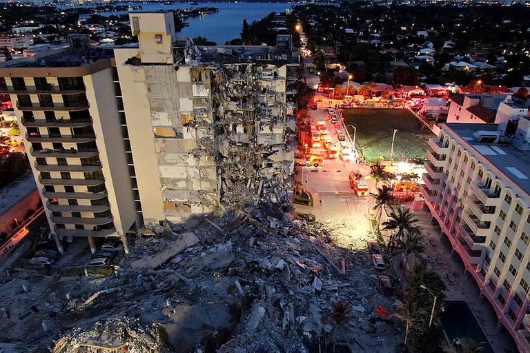El derrumbe ocurrió ayer a las 2 cerca de Miami Beach, en un edificio ubicado a pocas cuadras de la zona denominada como «la pequeña Buenos Aires», donde residen numerosos argentinos que emigraron en 2001. Se trata del complejo Champlain Towers, localizado en calle 88 y Avenida Collins, en Surfside.