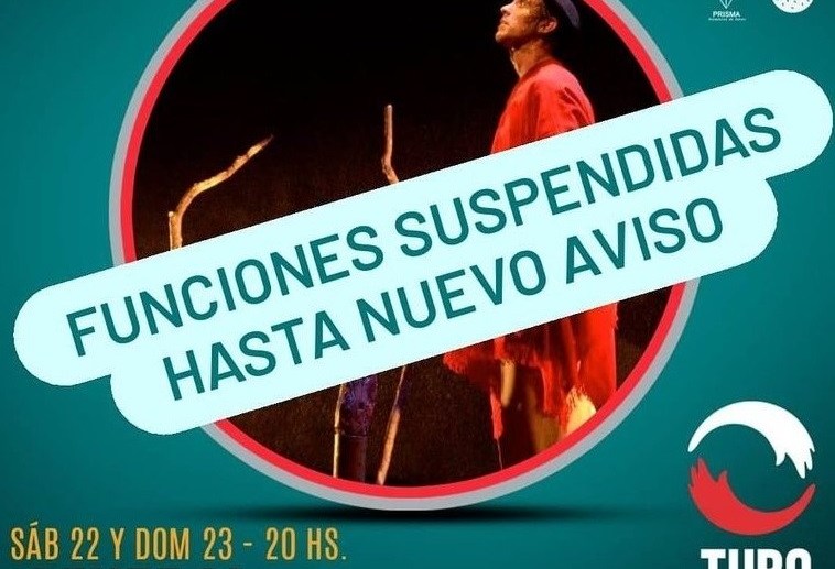 Desde el teatro El Tubo de la capital provincial se anunció la suspensión, hasta nuevo viso, de las funciones de la obra "¡Afuera! Gauchada Teatral", previstas para sábado y domingo.
