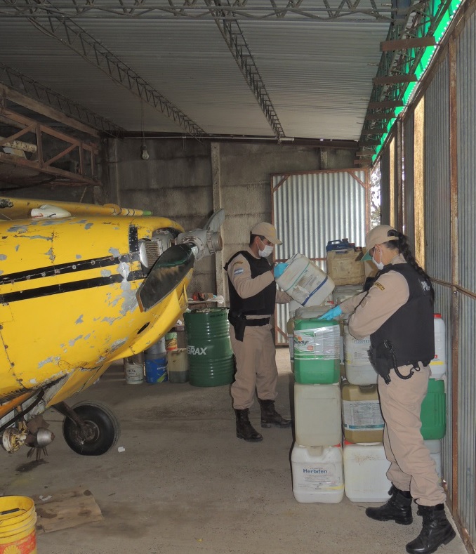 En la zona rural, también se decomisó documentación y se clausuró un hangar que resguardaba una aeronave CESSNA y una de menor porte. Además se incautaron 275 bidones vacíos de agroquímicos, 99 bidones con fertilizantes, herbicidas e insecticidas y tres carros tipo batán con capacidad de entre 1200 y 1500 litros.