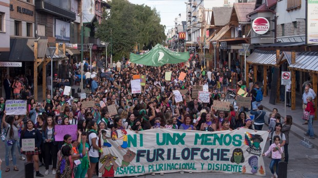Región Miles de mujeres en Bariloche contra la violencia machista Marcharon desde el Alto al Centro Cívico. Los femicidios y el aborto legal, las mayores consignas. Por Redacción