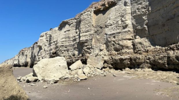 Sociedad Gran derrumbe de acantilados en Las Grutas: piden a turistas extremar precauciones y mantener distancia El desprendimiento de rocas se produjo en una zona poco transitada por lo cual no hubo que lamentar heridos. Por Redacción