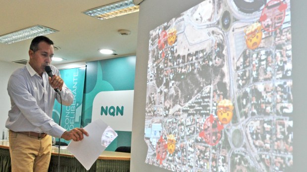 El concejal de Unidad Ciudadana Marcelo Zúñiga mostró una representación gráfica de cómo se complicará la circulación vial cuando esté terminada la obra que ahora está en su etapa inicial.