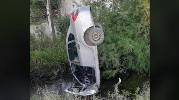 Sociedad No fue una pirueta, fue un accidente en la Ruta 151: por qué este auto quedó en posición vertical Ocurrió a la altura del tanque del DPA, en Cipolletti. Por Redacción