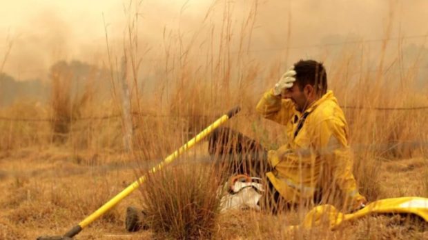 Sociedad Corrientes arde: quién es el bombero que protagonizó la foto viral de los incendios Su imagen, desolado en medio de la batalla contra el fuego, puso foco en la emergencia ígnea de la provincia. Por Redacción