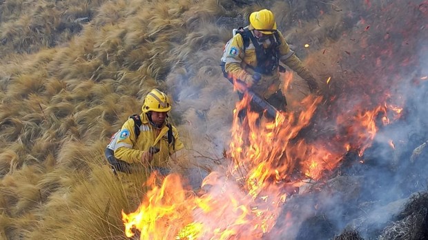 Sociedad Alerta máxima por incendio en Córdoba: bomberos combaten el fuego en el Cerro Champaquí Más de 350 hectáreas fueron afectadas por las llamas. Las condiciones climáticas complican las tareas. Por Redacción