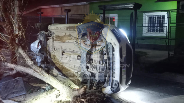 Sociedad Increíble choque y vuelco en Centenario: iba alcoholizado y terminó impactando contra un poste El auto impactó contra un poste, una reja y arrancó un árbol. Por Redacción