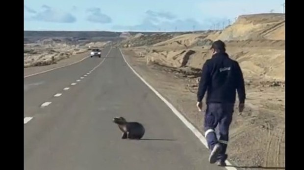 Redes VIDEO | Un lobo marino apareció sobre la Ruta 3 y un camionero lo salvó, en Comodoro Rivadavia El animal deambulaba sobre el asfalto cuando el transportista intervino y lo ayudó a salir del camino, bajo la mirada atónita de los automovilistas. Por Redacción