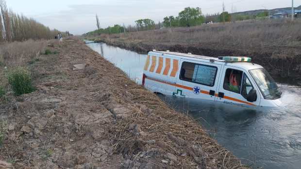Sociedad Una ambulancia con muestras de coronavirus cayó al canal en Cinco Saltos El vehículo del Ministerio de Salud de Río Negro se dirigía a la localidad y chocó contra un Renault Sendero en la Ruta 151. La fiscalía inició una investigación para determinar responsabilidades. Por Redacción