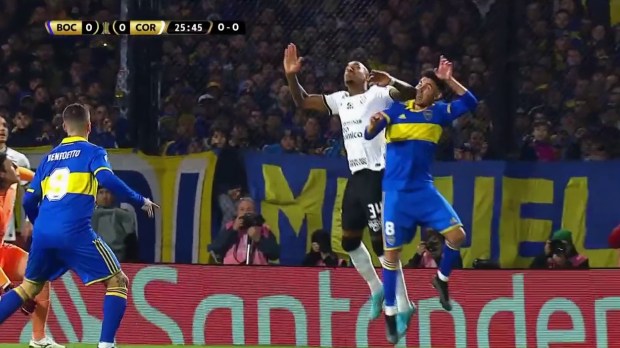 Codazo, sangre, penal y amarilla: la jugada polémica de Boca-Corinthians