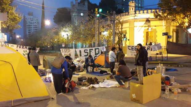 Este es el tercer día de acampe frente a la Casa de Gobierno. Reclaman que la Provincia se comprometa a construir edificios para los Institutos de Formación Docente.