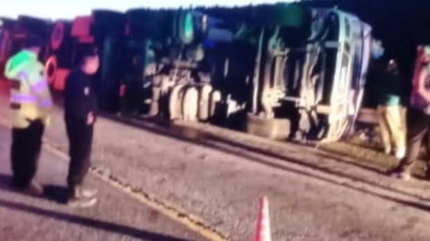 Sociedad Vuelco sobre la Ruta 40: un camión quedó tumbado y hay demoras para viajar de Bariloche al sur El incidente se produjo a la altura del río Foyel, kilómetros al norte de El Bolsón. Trabajan bomberos, Gendarmería y personal sanitario. Por Redacción