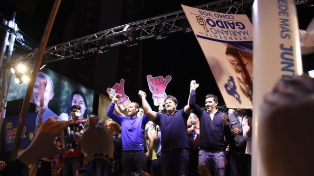 Región Gaido festejó su triunfo en el monumento y le agradeció a las colectoras Omar Gutiérrez y Mariano Gaido se dieron un abrazo sobre un escenario que se armó frente a la municipalidad de Neuquén y festejaron frente a un nutrido grupo de militantes. Por Redacción