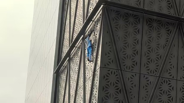 Sociedad Video: quién es el influencer que trepó un edificio de 30 pisos con una camiseta de Messi en Puerto Madero El escalador fue detenido por cuatro bomberos. Se montó un impresionante operativo. Por Redacción