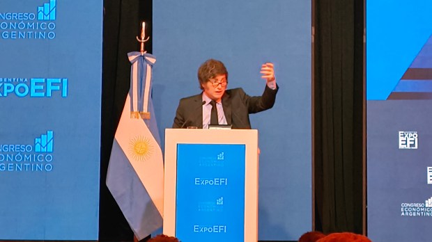 El presidente se presentó en el cierre del evento más importante de finanzas y economía. Con tono soez e irónico, denostó a economistas, políticos y periodistas. Insistió en qué la inflación "tiene fecha de defunción" y anticipó una reforma tributaria.