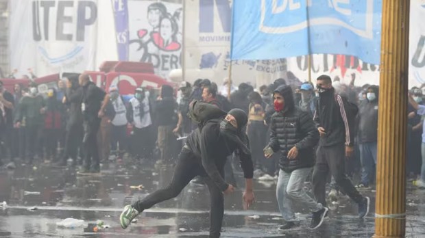 Política Ley Ómnibus: aplicaron el protocolo antipiquetes y el líder del Polo Obrero terminó en el piso
