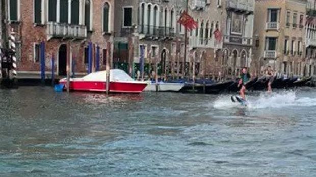 Redes Indignación en Venecia por dos jóvenes que hicieron esquí acuático en el Gran Canal "Aquí vean a a dos idiotas prepotentes que se burlan de la ciudad", escribió en sus redes sociales el alcalde de Venecia al compartir un video en el que se ve a dos personas haciendo esquí acuático en el canal principal. Por Redacción