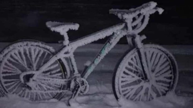 Viajes y Turismo Con 20 grados bajo cero encontró así su bicicleta en este paraíso de Chubut En este pueblo al sudoeste de Chubut, la sensación térmica llegó a -31°C. Cuando vio la bici, se lo tomó con humor: "Vendo a precio congelado". Por Redacción