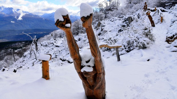 Viajes y Turismo A redescubrir el Bosque Tallado con nieve en El Bolsón Tras las primeras nevadas, la naturaleza y arte se fusionan en este museo al aire libre con 60 esculturas en el cerro Piltriquitrón. Por Soledad Maradona