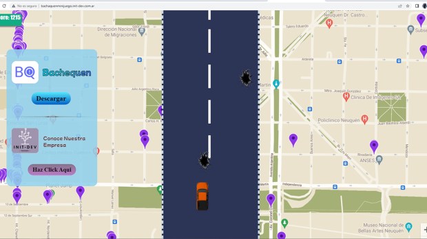 Sociedad Crearon un divertido juego para esquivar los baches en Neuquén Se puede acceder mediante un link. El propósito es esquivar los baches que se encuentran en la calle. Todos los pozos son reales y reportados por los usuarios. Por Redacción
