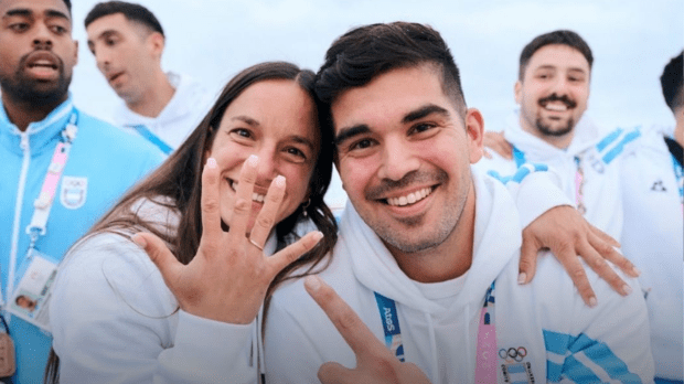 Redes ¡Qué viva el amor!: Pablo Simonet le pidió casamiento a Pilar Campoy en la Villa Olímpica y la sorprendió El jugador de Los Gladiadores sorprendió a la Leona proponiendole matrimonio frente de sus compañeros de equipo. El vídeo del emotivo momento. Por Redacción