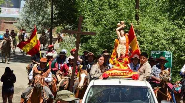 Sociedad El Norte Neuquino celebra a su patrono San Sebastián Con una inmensa bandera amarilla y roja, arribó este sábado a Las Ovejas la tradicional cabalgata. Decenas de peregrinos se movilizaron por las rutas de la zona para agradecer y cumplir promesas. Por Melina Ortiz Campos