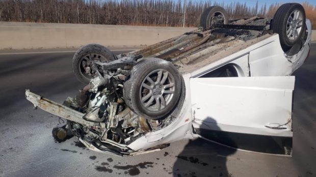 Sociedad Tres personas hospitalizadas luego de un vuelco en la Ruta 22 El hecho ocurrió alrededor de las 9.30 entre Huergo y Mainqué. El conductor habría intentado esquivar un yuyo que se encontraba en la cinta asfáltica. Por Redacción
