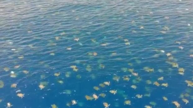 Mundo Miles de tortugas marinas vuelven 35 años después al lugar donde nacieron en la costa de Australia Científicos de Queensland captaron espectaculares imágenes desde un drone en la Gran Barrera de Coral. Las tortugas verdes, en peligro de extinción, regresan para anidar en las playas donde nacieron luego de un largo viaje. Por Redacción