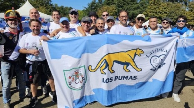 Son de Cipolletti y jugaron juntos en Marabunta hace más de 30 años. Con una bandera de Argentina que porta el escudo del club y remeras que poseen el número que utilizaban en la cancha, se robaron todas las miradas en el encuentro que disputaron Los Pumas contra Chile.