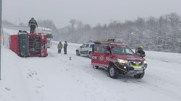 Sociedad Volcó un camión de Chile en la Ruta 231, cerca del paso Cardenal Samoré: «Estaba nevando bastante» El conductor tuvo que ser trasladado al hospital de Villa La Angostura. Por Redacción