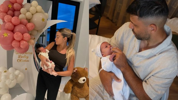 El Kun Agüero y Sofía Calzetti mostraron las primeras fotos de su hija Olivia