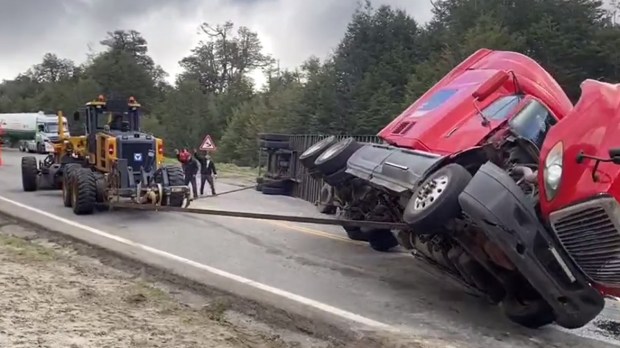 Sociedad Video: retiraron el camión que volcó y bloqueaba la ruta al paso Paso Samoré El vehículo de gran porte y patente extranjera quedó tumbado sobre la calzada, lo que obligó a interrumpir la circulación. Pasadas las 20 lograron despejar la ruta. Por Redacción