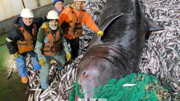 Sociedad Un buque pesquero capturó un tiburón de 9 metros en Chubut y causó revuelo en las redes: temen que haya muerto El tiburón fue capturado durante una jornada de pesca de merluza. Si bien fue devuelto al mar, preocupan si se mantuvo con vida. Esto dicen los expertos. Por Naira Torres Bel