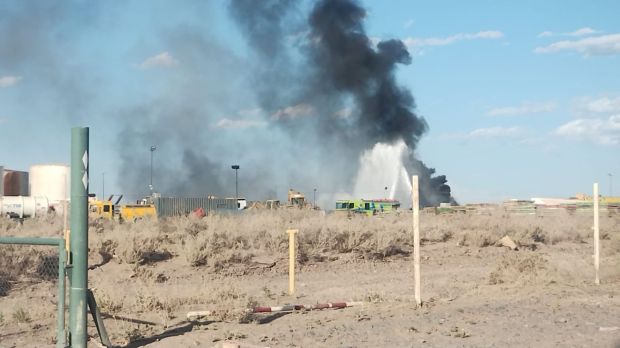 Sociedad Controlan el incendio en la planta de residuos petroleros en Vaca Muerta: bomberos afectados por el humo Ya aplican tareas de enfriamiento en el sector. Personal de la división de Añelo fue trasladado al hospital. Por Redacción