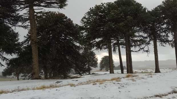 Sociedad Primeros Pinos se cubrió de nieve en un domingo de frío y lluvia en la región El paraje llenó de blanco su paisaje en una jornada de un marcado descenso de temperaturas en la zona. Por Redacción