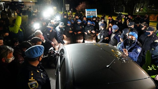 País Incidentes en el traslado de Lázaro Báez, tras otorgársele la prisión domiciliaria El empresario cumplirá el beneficio en el country Ayres de Pilar. Allí, los vecinos se organizaron para no dejarlo ingresar a la residencia. Por Redacción