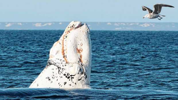 Sociedad El maravilloso momento frente a una ballena blanca: sorpresa, saltos y juegos Un juvenil de ballena franca austral sorprendió a los visitantes en las costas de Puerto Madryn. Un fenómeno genético que suma magia a la temporada. Por Alejandro Carnevale