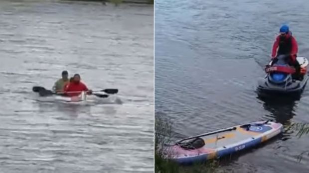 Sociedad Rescate en Neuquén: remaban en tablas SUP, el viento los complicó y terminaron colgados de una rama La temporada de verano finalizó con una rápida actuación de los guardavidas en el río Limay. Por Redacción