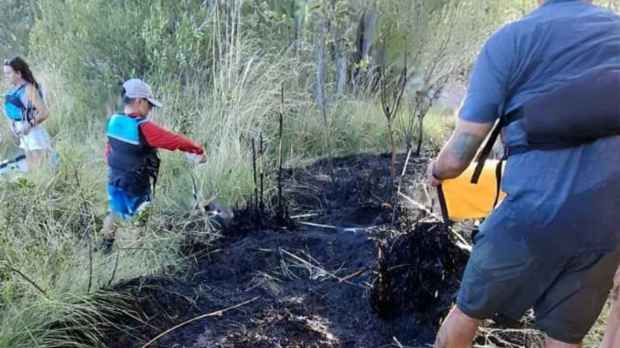 El foco ígneo se detectó cerca del balneario de Plottier, a la altura del Paseo de la Costa. Integrantes de la Escuela de Kayak Hábitat actuaron de inmediato y lograron controlar el fuego en medio de la emergencia por incendios que atraviesa la región andina.