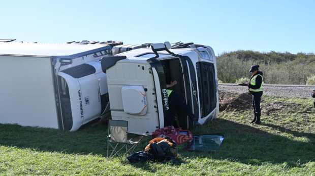 Sociedad Volcó un camión en Chimpay: cayó en una canaleta sin señalizar sobre la Ruta 22 Un camionero de 65 años volcó su vehículo en la Ruta 22, a la altura de Chimpay, tras caer en una canaleta sin señalizar. A pesar del impacto, no sufrió heridas. Por Redacción