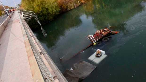 Sociedad El camión que cayó del Tercer Puente seguirá en el río Neuquén: temen por la gente que se arroja a robar y por la contaminación